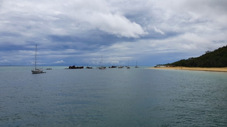 Tangalooma Wrecks in sight near the beach of Moreton Island